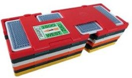 Je speelt allemaal dezelfde spellen. Hiernaast zie je een aantal van de 24 spelborden. Alle spelers halen hun eigen kaarten daaruit, wie noord zit, de kaarten uit het noord vakje, etc. En omdat alle spelers tijdens het spel hun eigen kaarten bij zich houden, kunnen de kaarten nadat het spel is gespeeld ook weer terug in het bord en door andere paren worden gespeeld. Na afloop van de wedstrijd hebben alle paren dezelfde (24) spellen gespeeld. En de uitslag ontstaat door per spel alle resultaten met elkaar te vergelijken. Als jij met je partner in de NZ-richting speelde, en de meeste punten haalde van alle NZ-paren, scoor je 100%! Zit je score in de middenmoot, dan zal je rond de 50% eraan overhouden, en ging het even helemaal verkeerd, dan zit je onder de 50%. Het gemiddelde percentage over alle gespeelde spellen bepaalt jullie plaats in de eindstand.